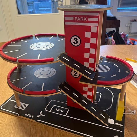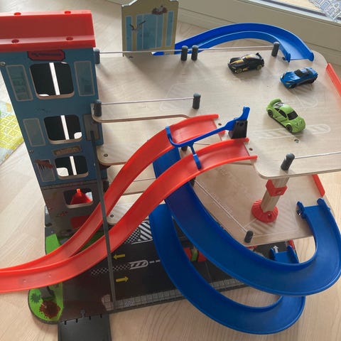 Myydään meille tarpeeton tosi siisti 4-kerroksinen lasten autojen parkkihalli. Hissi toimii manuaalisesti, kaikki osat ovat ehjät ja leikitty on todella vähän joten kunto erinomainen.