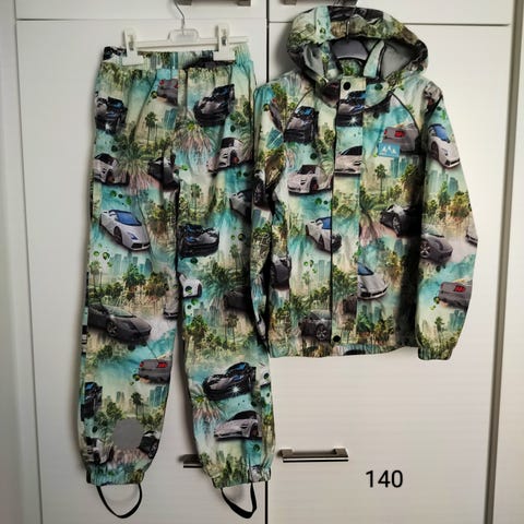 - Raiskin välikausipuku 140 cm, housuissa pieni paikattu reikä