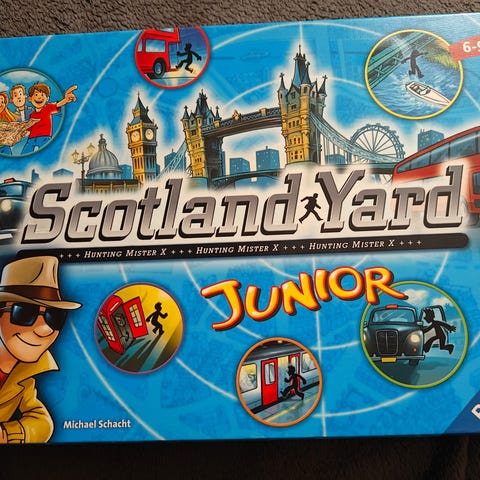 Ravensburger Scotland Yard lautapeli. Peli sijoittuu Lontooseen, jossa yksi pelaaja on karkuteillä oleva Mr. X ja muut pelaajat toimivat etsivinä, jotka yrittävät saada hänet kiinni kaupungin joukkoliikennettä hyödyntäen. Pelissä on Lontoon karttapelilauta, pelinappuloita, lippuja ja muita pelimerkkejä. Soveltuu useammalle pelaajalle perhe- ja seurapelikäyttöön. Käyttämätön.