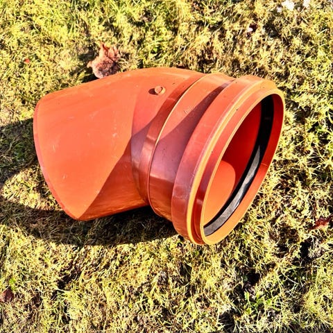 Maaviemärin kulmayhde PVC 250x88,5°. 4kpl löytyy. Kaikki kerralla pois 50€.