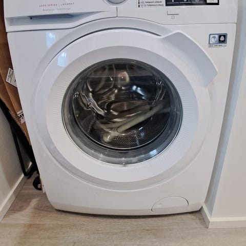 Samsung edestä täytettävä pesukone, väri valkoinen. Pesukoneessa on etupaneelissa ohjelmavalitsin ja digitaalinen näyttö, josta voi seurata pesuohjelman kestoa ja asetuksia. Laitteessa on useita eri pesuohjelmia erilaisille tekstiileille ja likaisuustasoille. Etuluukku on läpinäkyvä.Soveltuu tavanomaiseen kotikäyttöön vaatteiden ja kodintekstiilien pesuun.