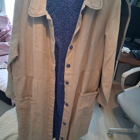 Kevyt, pellavainen ja A-linjainen takki Gudrun Sjödeniltä. Väreinä nyt muodissa taas oleva sinertävän lila (lila-tummanlilaruutu, ks. kuvat), Kokomittoja tulossa/pyydettäessä. Gudrun sjödenin kokomitoitus löytyy myös tuolta: https://www.gudrunsjoden.com/fi-fi/asiakaspalvelu/loyda-oikea-koko