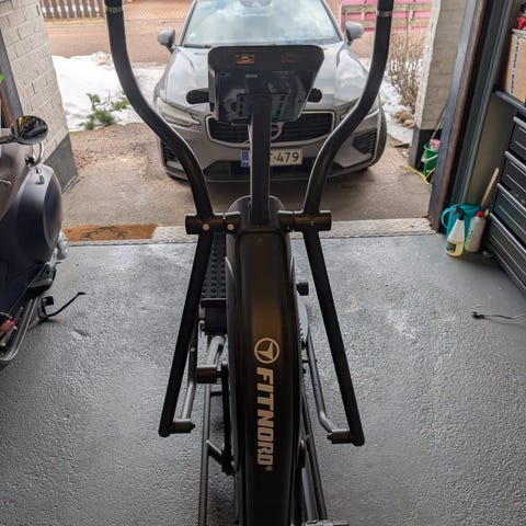 FitNord crosstrainer sisäharjoitteluun. Laitteessa on etupyöräveto ja leveät, liukumattomat askelmat. Ohjauspaneelissa on näyttö, josta voi seurata harjoittelun perusarvoja (esimerkiksi aika ja arvioitu kalorinkulutus). Kädensijoissa on sykeanturit, joiden avulla voi seurata sykettä harjoituksen aikana. Väri musta. Soveltuu kotikäyttöön koko kehon aerobiseen harjoitteluun.