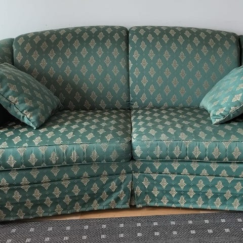 Belianilta ostettu smaragdinvihreä 3 istuttava vuodesohva.