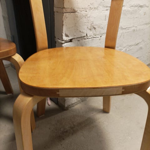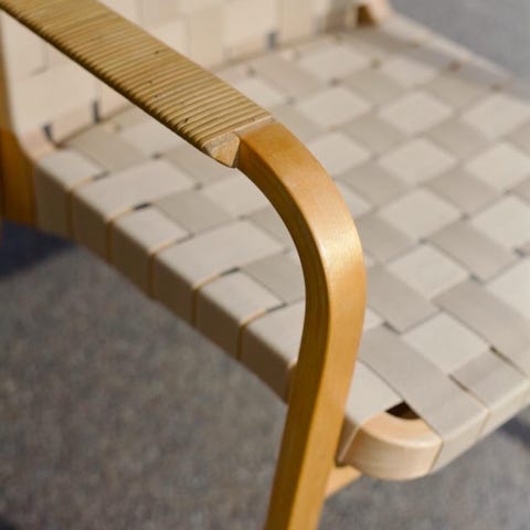 Artek Alvar Aalto tuoli koivuvanerirunko ja vaalea nauhapunosistuin