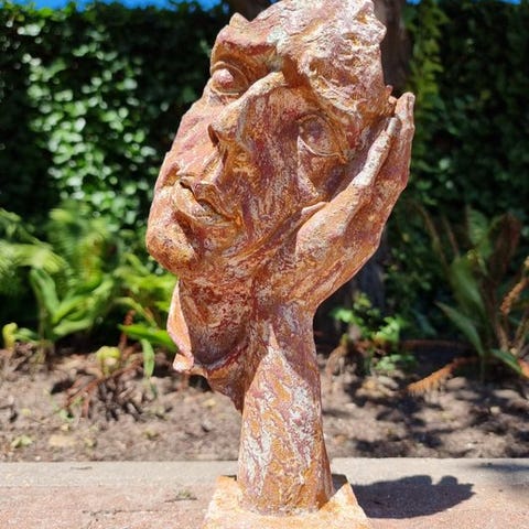 Kaunis veistos miehestä, joka pyytää hiljaisuutta. Veistos esittää kauniin yksityiskohdan. Se on upeassa vintage-tilassa, ruostepatina. Ruostepatina kehittyy sään mukana. Siksi ruostetta voi olla enemmän tai vähemmän kuin kuvassa. Veistos antaa tästä yhä erilaista vaikutelmaa jokaisena vuodenaikana. Mittaukset ovat seuraavat (+/-):Korkeus: 31 cmLeveys: 13 cmKaikki tuotteemme lähetetään hyvin pakattuina ja vakuutettuina.