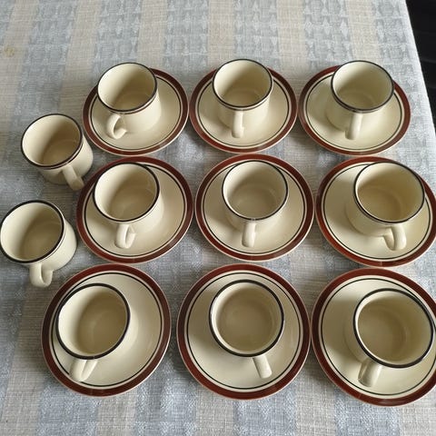 Ranskasta ostettu keraamiset 3xkahvi-/teemukit ja 3xmurokulhot. Tekijä ei ole tiedossa. Myydään kaikki yhdessä. Hinta 25€. Mobilepay. Nouto Tammisalo.