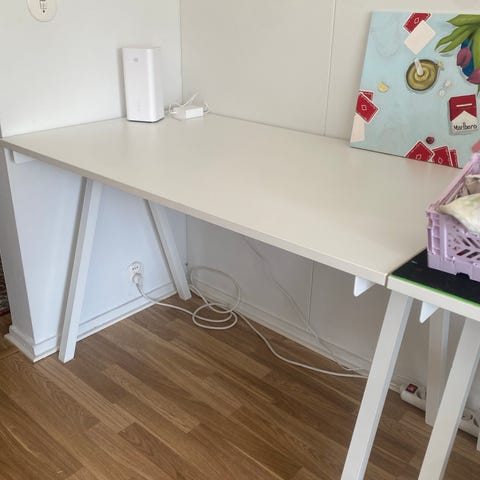 Vähäisessä käytössä ollut kirjoituspöytä. Mukana tulee lamppu mikä näkyy kuvissa se on integroitu pöytään mutta voi myös irrottaa.