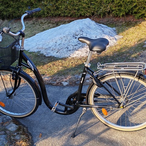 Pyörän avaimet hävinneet. Mukaan vanha lukko yhdellä avaimella. (Korissa).