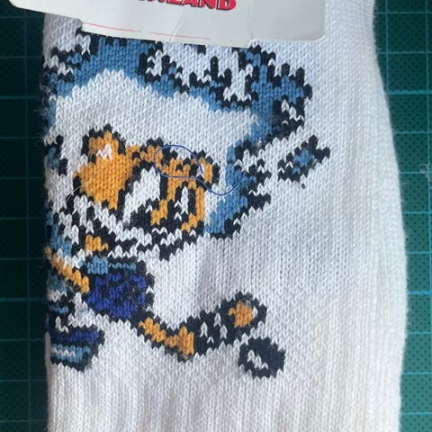 Hyvässä käytetyssä kunnossa olevat viiltosuojasukat. Sukan päältä mitattuna pituus kannasta varpaanpäähän venyttämättä 16 cm.