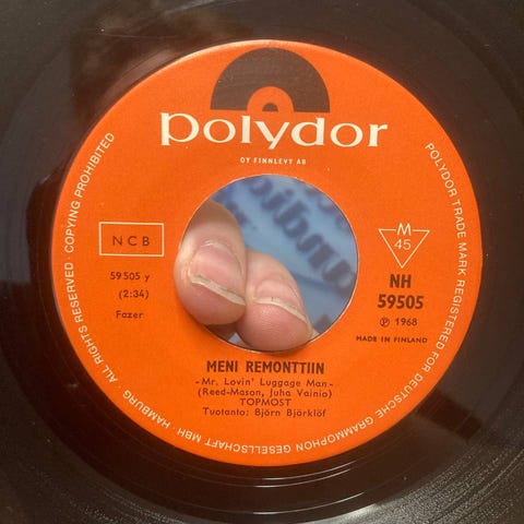 Star Records -levymerkin 7" vinyylisingle, esittäjänä Ringa ja Kaksoset. Toisella puolella kappale "Kunnan maksat kyytisi" ja toisella puolella kappale "pitkin poikin". VG