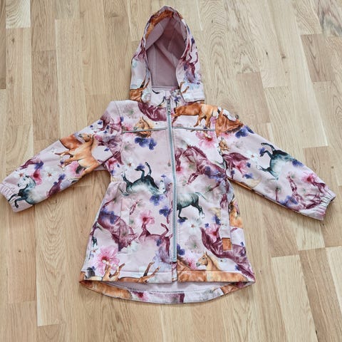 Name it lasten välikausitakki tytöille softshelliä. Koko 104. Materiaalina polyesteri. Takissa on monivärinen, kukkakuvioinen pinta ja kiinteä huppu. Edessä on vetoketjukiinnitys ja taskut vetoketjuilla. Sisäpuolella on pehmeä fleecevuori polyesteristä. Soveltuu arki- ja ulkoilukäyttöön viileämpiin säihin.