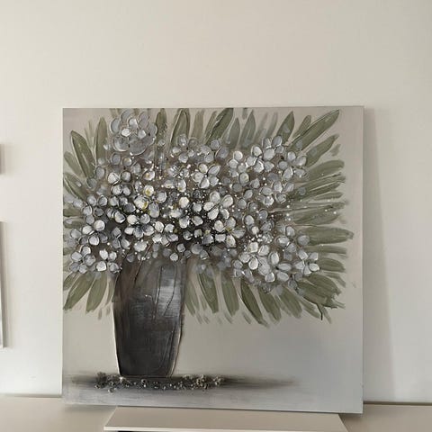 Kaunis kukkamaalaus ja kultasävyiset kehykset. Ehkä akryyliteos? 31x25cm. Nouto Kulosaaresta.