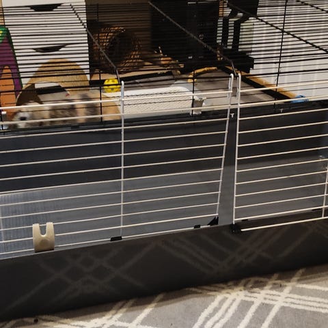 Zooplussasta ostettu kanin häkki. Pientä käytön jälkeä, pohjassa kalkkijälkiä ja kaltereissa jossakin kohtaa pientä jälkeä. Hyvässä kunnossa muuten, jäljet eivät haittaa käyttöä.