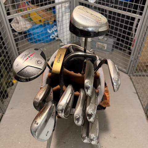 Hyväkuntoinen golfsetti aloittelevalle/keskitasoiselle pelaajalle.
