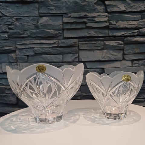 Mats Jonassonin suunnittelemat ja Ruotsin Målerås-lasitehtaalla valmistetut kristalliset sydänveistokset. Takana hiekkapuhallettu ja käsinmaalattu sydän. Korkeus noin 7cm