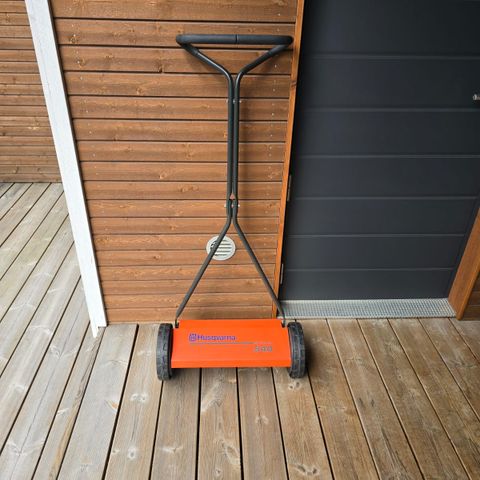 Vähällä käytöllä ollut Gardenan kelaleikkuri ruohonkerääjällä.