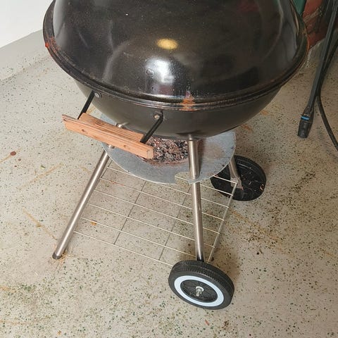 Ollut käytössä yhden kesän, nyt saa väistyä isomman grillin tieltä. Grilli hyvässä kunnossa ja ulkoisesti puhdas, sisällä hieman ritilöissä ja seinissä kosteuden aiheuttamaa pintaruostetta joka hävinnee ensimmäisen lämmityksen aikana. Harjailtu enimmät liat pois teräsharjalla ja pyyhitty pinnalta talven pölyt.