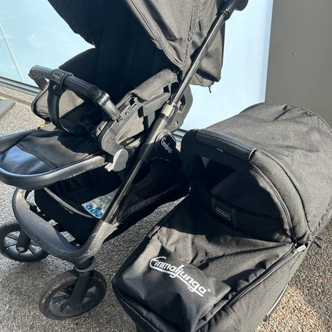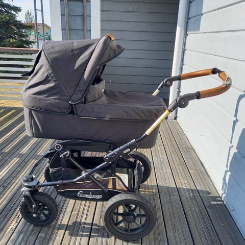 Tukevat ja kapean mallin ansiosta kätevät rattaat liikkua ahtaissakin paikoissa. Ilmatäytteiset renkaat, säädettävä työntökahva ja tukeva jarru. Runko musta, vaunukoppa mustaa nahkaa + värikäs lisäkuomu, rattaiden kuomu ja kangasosat beiget. Mukaan tulee sadesuoja ja adapterit, joilla voit lisätä turvakaukalon runkoon. Runko on hyvässä kunnossa, koko setin kangasosat ehjät, ei pinttymiä ja etenkin vaunukoppa täysin virheettömässä kunnossa, rattaiden työntökahvassa kulumaa.