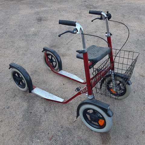 Sininen potkupyörä. Säilytetty sisävarastossa. Hyväkuntoinen, toimivat jarrut, tilava kori. Vain nouto.