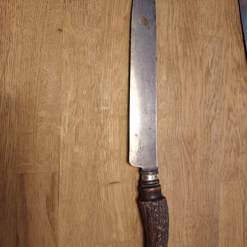 Myydään vanha veitsi. Kaiverrus/valmistaja Johannes Lauri Rovaniemi.