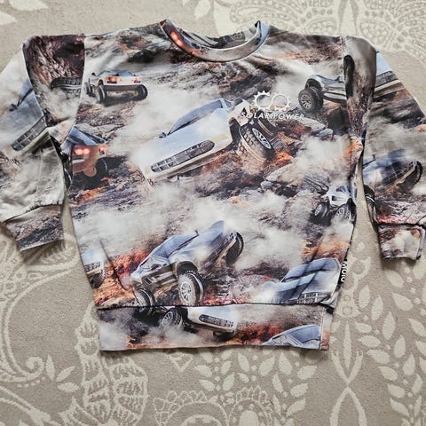 Molo collegepaita pojalle, koko 122. Väriltään musta, edessä vaalea tähtikuvio. Pitkähihainen malli, jossa resorit pääntiessä, hihansuissa ja helmassa. Sopii arkeen ja vapaa-aikaan.