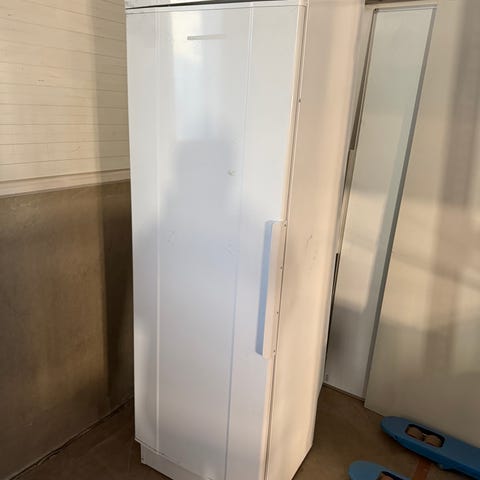 Electrolux kuivauskaappi, hormiin poistava malli. Valkoinen, vapaasti seisova kaappi, jossa useita metallisia kuivaustasoja vaatteiden, kenkien ja tekstiilien kuivaamiseen. Ohjauspaneelissa virtakytkin ja merkkivalot eri kuivausajoille. Soveltuu asennettavaksi tilaan, jossa on mahdollisuus liittää kaappi hormiin tai poistoilmakanavaan.