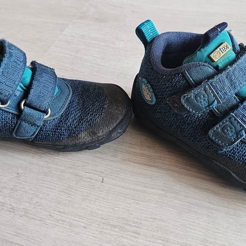 Affenzahn lasten välikausikengät, koko 26, (sm 17.1cm) Unisex-malli, joka sopii sekä tytöille että pojille. Väri turkoosi, vaaleanpunaiset tarrakiinnityshihnat ja kaksivärinen pohja. Kengissä kaksi tarranauhaa, joiden avulla kengät on helppo pukea ja säätää jalkaan sopiviksi. Kenkien suu aukoilla kulumaa,näkyy kuvassa.