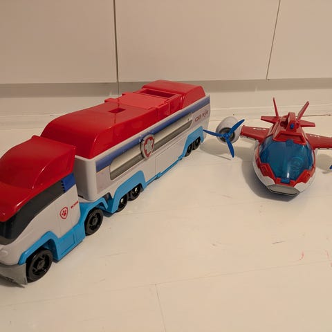 Myydään Ryhmä Haun vaunu. Robokoira ajokilla + kaksoset ajokeilla. Kaikki osat tallella. Vaunun pituus n. 40cm.