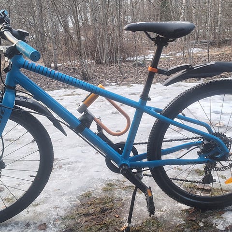 Hyväkuntoinen 8vaihteinen levyjarrullinen 24" (poikien) pyörä. Ehjä satula, hyvät renkaat, lokarit, pulloteline, soittokello ja seisontajalka.