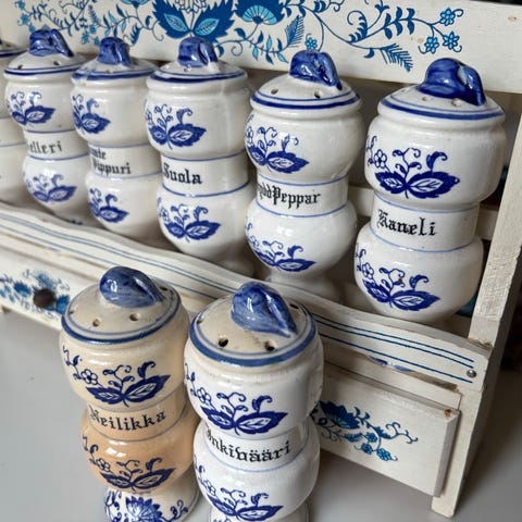 Purkeissa on tekstit suomeksi. Piippuleimat, ehjät ei krakkeloitumia.