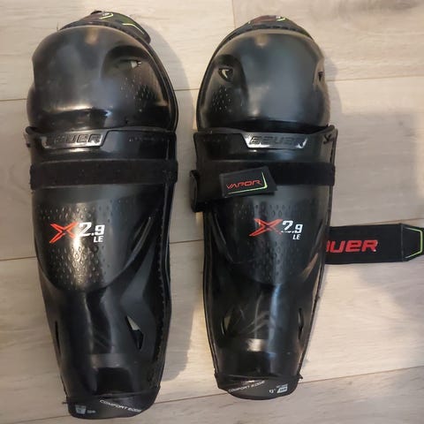 Bauer Vapor X700 jääkiekkosäärisuojat, koko 11" / 28cm. Väri musta/punainen. Suojissa on kovamuovinen kuori ja pehmustettu sisäosa, joka on irrotettavissa. Kiinnitys tapahtuu tarranauhoilla säären ja pohkeen ympäri. Soveltuvat jääkiekkoon ja muuhun jäällä pelattavaan lajiin säärien ja polvien suojaamiseen.