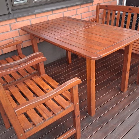 Puutarhakalustesetti puinen pöytä ja tuolit(6kpl) pehmusteilla