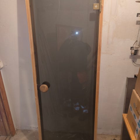 Saunan lasiovi, ei karmeja, ei vedintä. Korkeus 183 cm, leveys 82 cm. Nouto Vantaa, kuljetus lisämaksusta