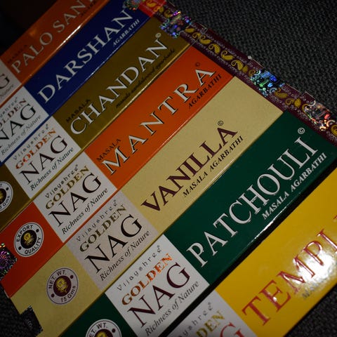 Kuvan suitsukepaketit. Nag-sarjan suitsukkeissa on perinteisesti hieman voimakkaampi tuoksu kuin esim. satyan suitsukkeissa ja laadultaankin ovat mielestäni hitusen parempia... Suitsukkeen tuoksu jää leijumaan huoneeseen 2-4 pvksi. Pakkauksessa on 10 tikkua.