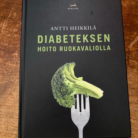 Lääkäri Antti Heikkilän Diabeteksen hoito ruokavaliolla -kirja. Kovakantinen teos, jossa käsitellään diabeteksen hoitoa ja hallintaa ruokavalion avulla. Kirja sisältää tekstiä ja teoriaa aiheesta, suunnattu aikuislukijoille terveys- ja ravitsemusaiheista kiinnostuneille. Ostettu käytettynä. Sisältää mm. alleviivauksia lyijykynällä, mutta on muuten siisti.