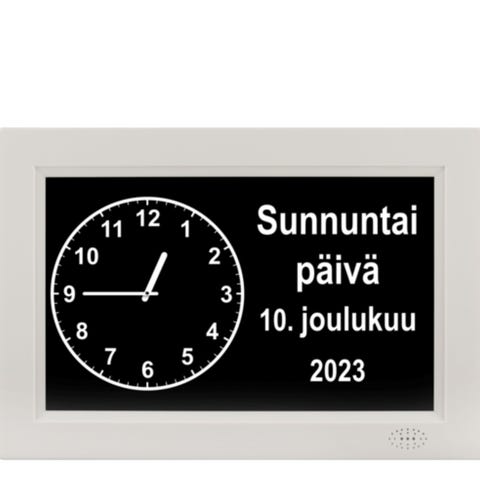 Seniorikello Dementiakello, suomen kielellä, kuin uusi! Alle 6kk vanha.