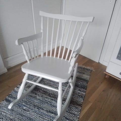 Myydään punainen sirompi keinutuoli kullatuilla jaloilla. Kiva keinutella.