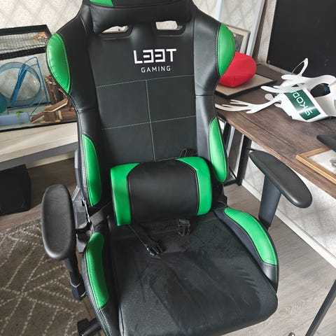 Myydään nahkainen maattava tuoli. Tuolin kaiuttimien kunnosta ei ole tietoa.