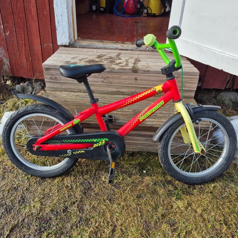 Tästä laadukas kevyt pyörä seuraavalle pienelle pyöräilijälle. Islabikes Cnoc 16". Todella kevyt ja mukava lapsen käsitellä. Käsijarrut. Seisontatuki. Käytön jälkeä rungossa näkyy, mutta kulkee hyvin ja huollettu asianmukaisesti.