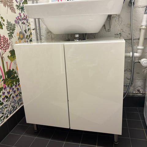 Kylpyhuoneen allaskaappi valkoinen ja hana