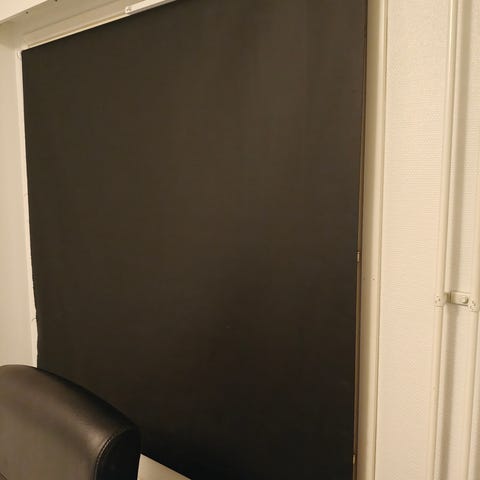 Uusi pimentävö rullaverho, valkoinen. Meillä ei mitat olleet oikeat meidän ikkunaan. 100* 170.