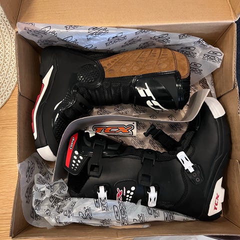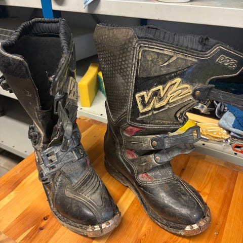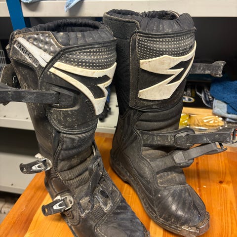 Shift lasten crossisaappaat, musta‑pinkki. Saappaat on suunniteltu motocross- ja endurokäyttöön. Varren etu- ja takapuolella on vaimennettuja ja vahvistettuja alueita. Kengissä on useita säädettäviä solkikiinnityksiä, jotka tukevat jalkaa ja pitävät saappaan tukevasti paikoillaan. Pohja ja kärki on vahvistettu kulutusta ja iskuja vastaan. Sisäosa on pehmustettu käyttömukavuuden ja suojan parantamiseksi.