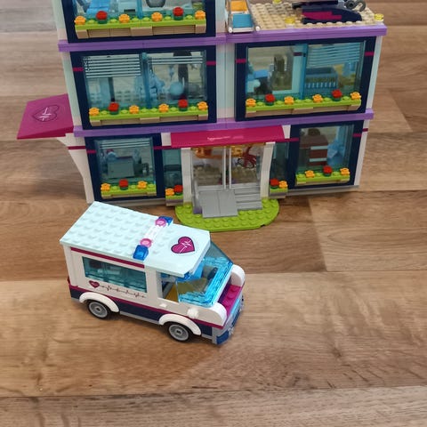 LEGO Friends rakennussarja, jossa monikerroksinen sairaalarakennus ja ambulanssi. Settiin kuuluu rakennettava sairaala, ajettava ambulanssi sekä useita pienempiä tarvikkeita ja hahmoja. Mukana ovat myös ohjevihkot, joiden avulla rakennusvaiheet on helppo seurata.