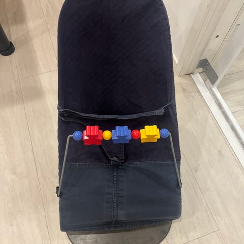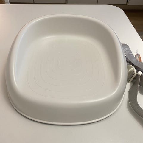 Vaalean sininen istuin koroke normi tuolille laitettava. Koroke auttaa saamaan hyvän asennon lapselle jos normi tuoli on liian matala vielä.