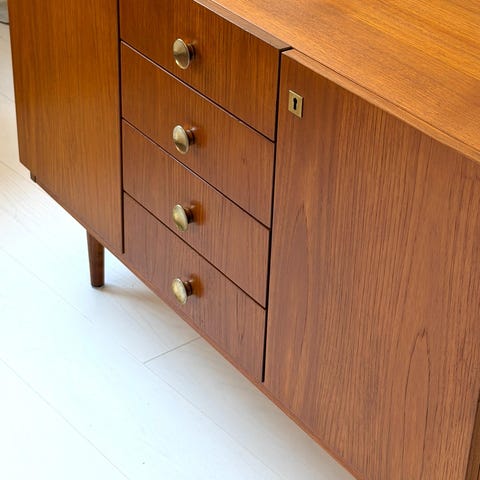 Hakusanoja: Lipasto vanha vintage kaappi tiikki mediataso matala hylly pitkä