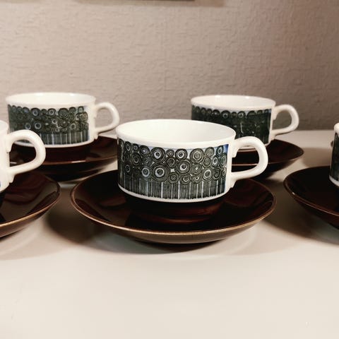 Röstrandin Sundborn kahvikupit 4 kpl, sokerikko ja kermakko. Hinta yhteensä 50 e + mahd postikulut 11,90 e