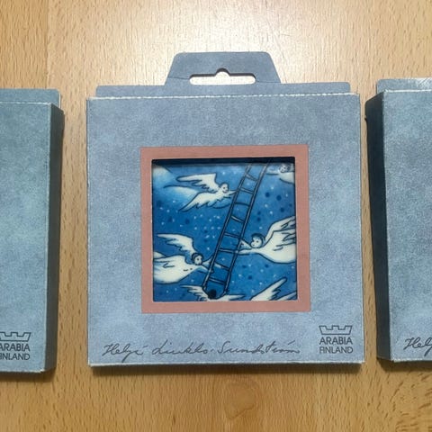 4kpl Arabian seinälautasia, Vänrikki Stoolin tarinat: Lotta Svärd, Sven Tuuva, Döbein juuttaalla, Vänrikin markkinamuisto. 20eur/kpl tai 60eur/4kpl.