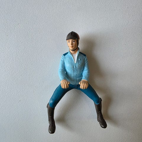 Schleich ratsastaja siiri ja hevosen hoitaja. Ok kunnossa, käytönjälkeä löytyy. Hoitaja on hieman etukenossa. Katso muutkin schleich kohteeni