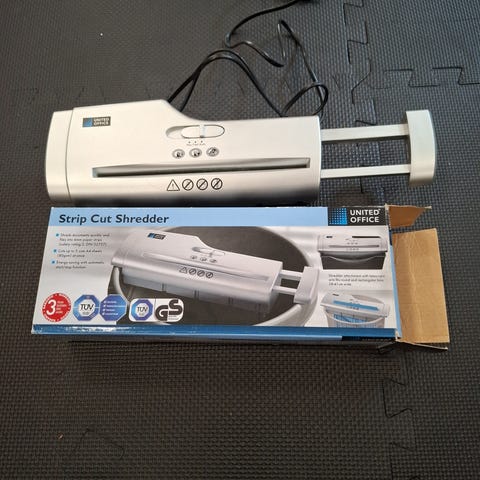 Käyttämätön Peach Strip Cut Shredder 500 SB - paperisilppuri. Erittäin kätevä ja pienikokoinen laite arkaluonteisten papereiden tuhoamiseen.
